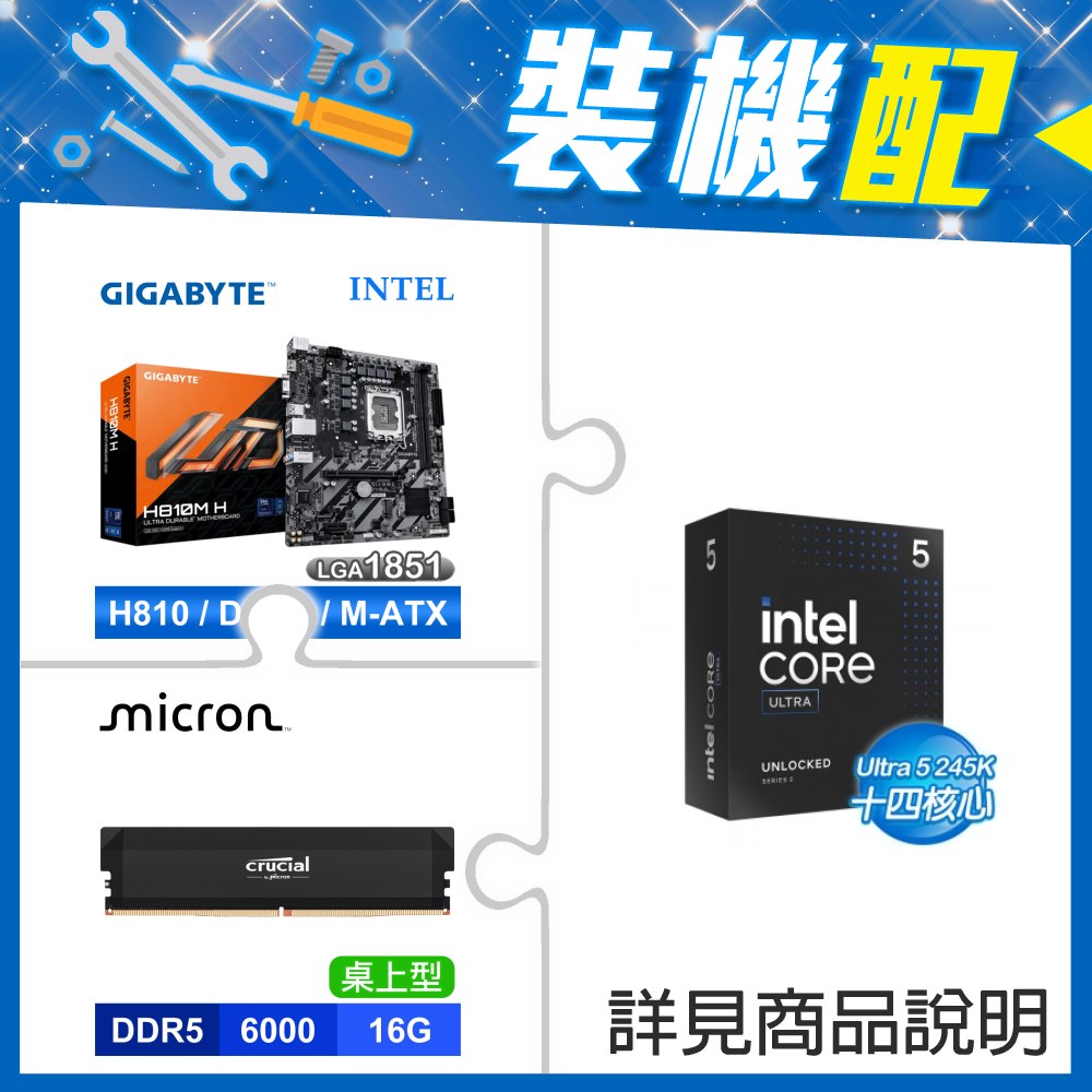 ☆裝機配★ Core U5 245K+技嘉 H810M-H D5 MATX主機板+美光 Crucial PRO DDR5-6000 16G 記憶體