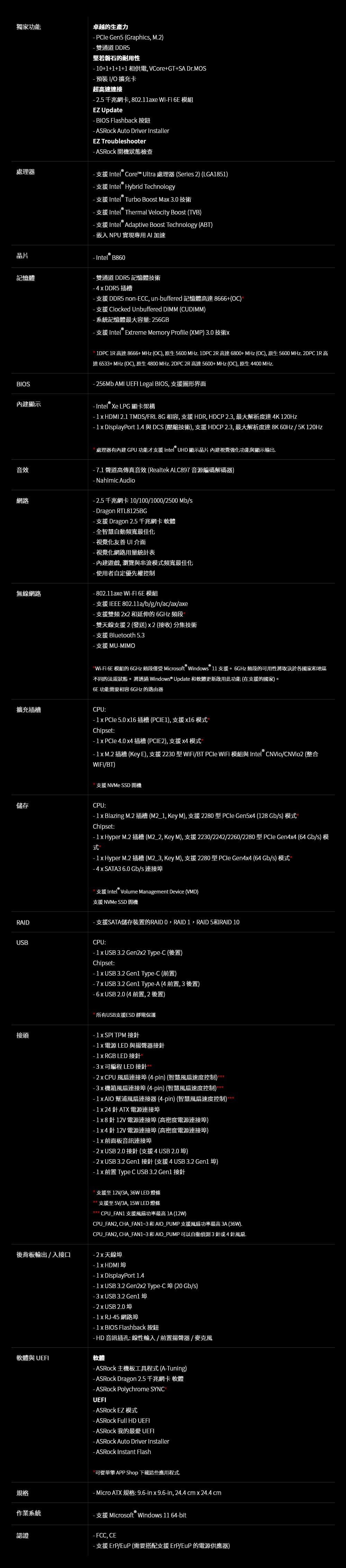 ASRock 華擎 B860M Pro RS WIFI LGA1851主機板(MATX/3+2年保)
