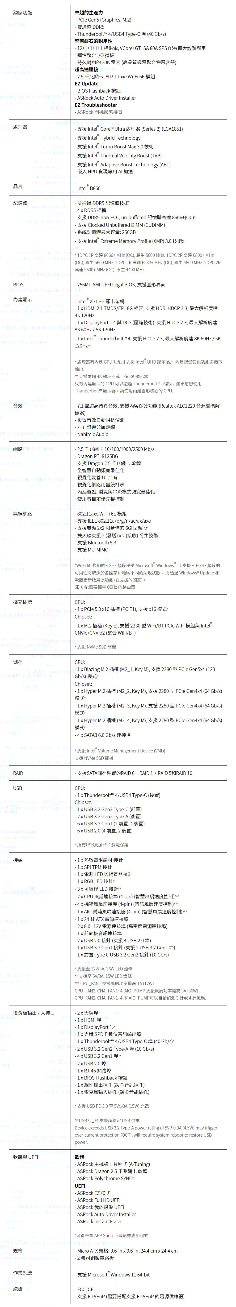 ASRock 華擎 B860M Pro RS WIFI LGA1851主機板(MATX/3+2年保)