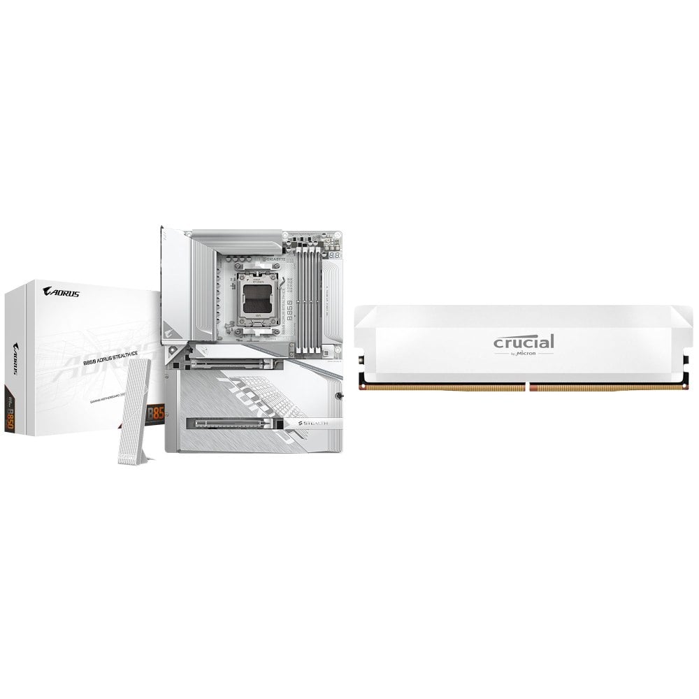 ☆期間限定★ 技嘉 B850 AORUS STEALTH ICE背插式 ATX 主機板+美光 Crucial PRO DDR5 6000 16G CL36 白 記憶體