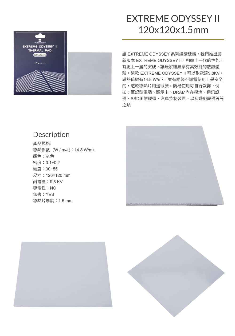 Thermalright 利民 EXTREME ODYSSEY II 120*120*1.5 mm 導熱片(導熱係數14.8 W/mk)