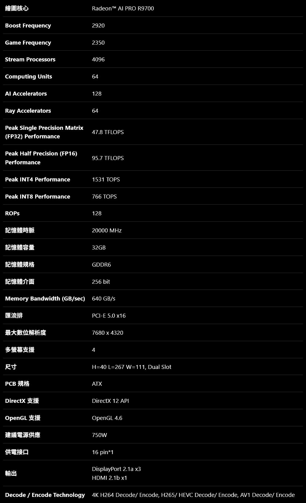 - 採用 Radeon™ AI PRO R9700 運算晶片