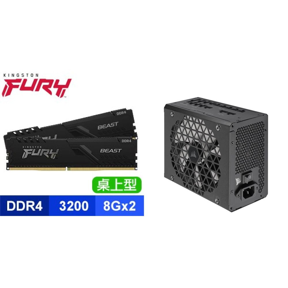 ☆期間限定★ 金士頓 獸獵者 D4 3200 8G*2 CL16 黑 記憶體+海盜船 RM1000x SHIFT 金牌全模ATX3.1電供