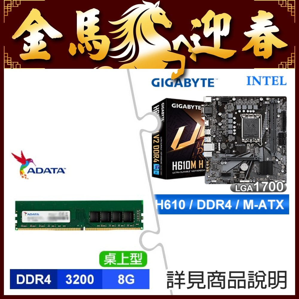 ☆期間限定★ 技嘉 H610M H V2 D4 M-ATX主機板+威剛 DDR4-3200 8G 記憶體