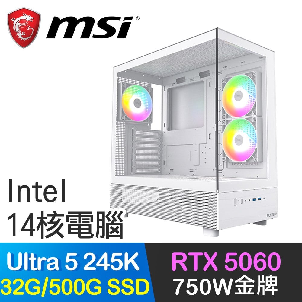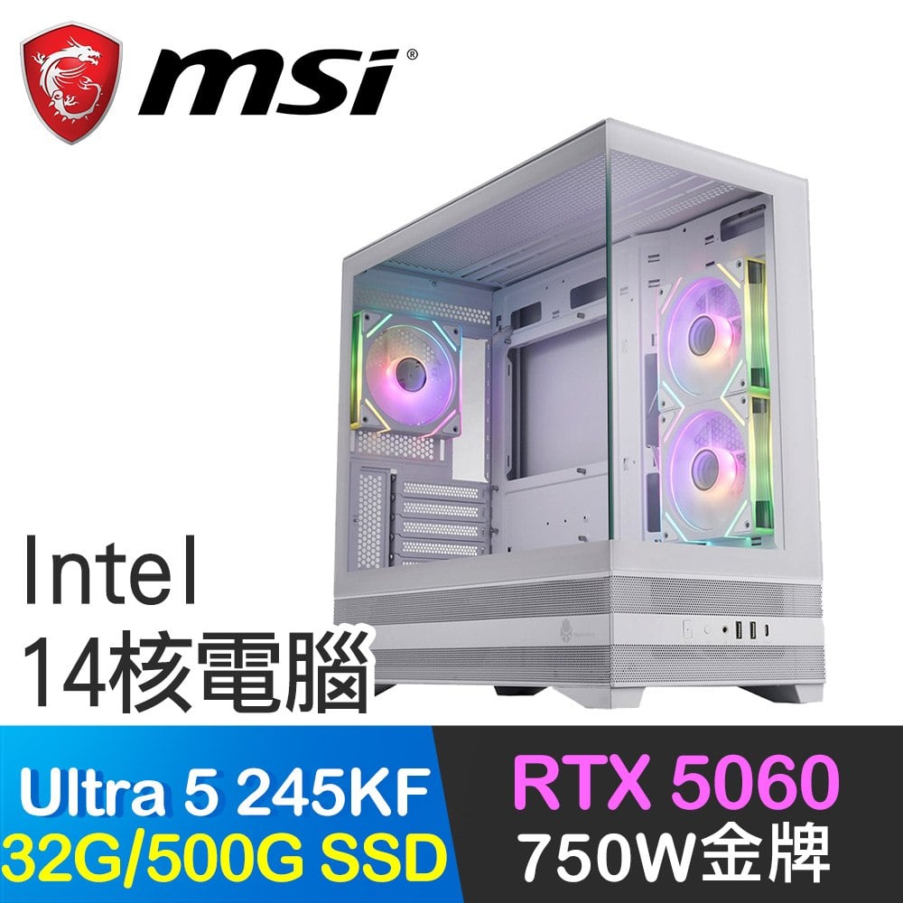 微星系列【冰霆E】Ultra5 245K 14核 RTX5060 電腦主機(32G/500G SSD)