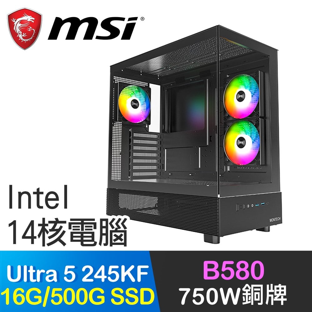 微星系列【暗嶽B】Ultra5 245K 14核 B580 電腦主機(16G/500G SSD)