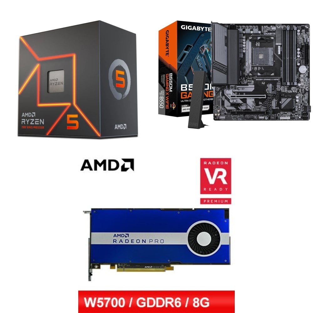 ☆裝機配★ AMD R5 7500F+技嘉 B550M GAMING X WIFI6 D4 MATX主機板+AMD RadeonPro W5700 8G 256bit專業繪圖卡