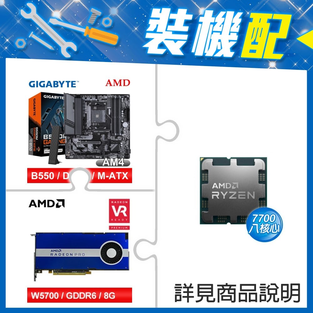 ☆裝機配★ AMD R7 7700 MPK+技嘉 B550M GAMING X WIFI6 D4 MATX主機板+AMD RadeonPro W5700 8G 256bit專業繪圖卡