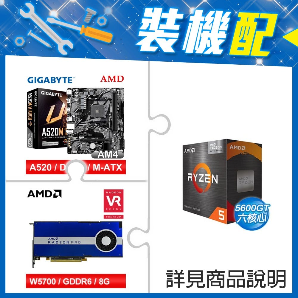 ☆裝機配★ AMD R5 5600GT+技嘉 A520M H ARGB D4 MATX主機板+AMD RadeonPro W5700 8G 256bit專業繪圖卡