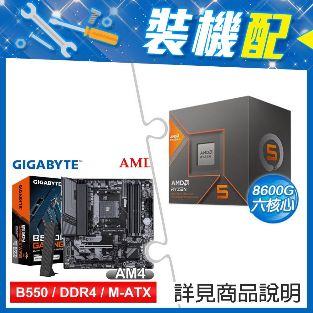 ☆裝機配★ AMD R5 8600G+技嘉 B550M GAMING X WIFI6 D4 MATX主機板