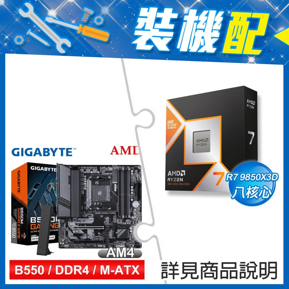 ☆裝機配★ AMD R7 9850X3D+技嘉 B550M GAMING X WIFI6 D4 MATX主機板