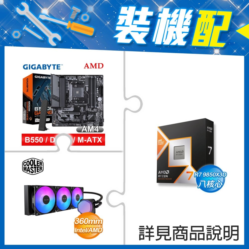 ☆裝機配★ AMD R7 9850X3D+技嘉 B550M GAMING X WIFI6 D4 MATX主機板+酷碼 EliteLiquid 360 ARGB 水冷散熱器