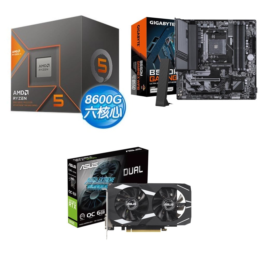☆裝機配★ AMD R5 8600G+技嘉 B550M GAMING X WIFI6 D4 MATX主機板+華碩 DUAL-RTX3050-O6G 顯示卡