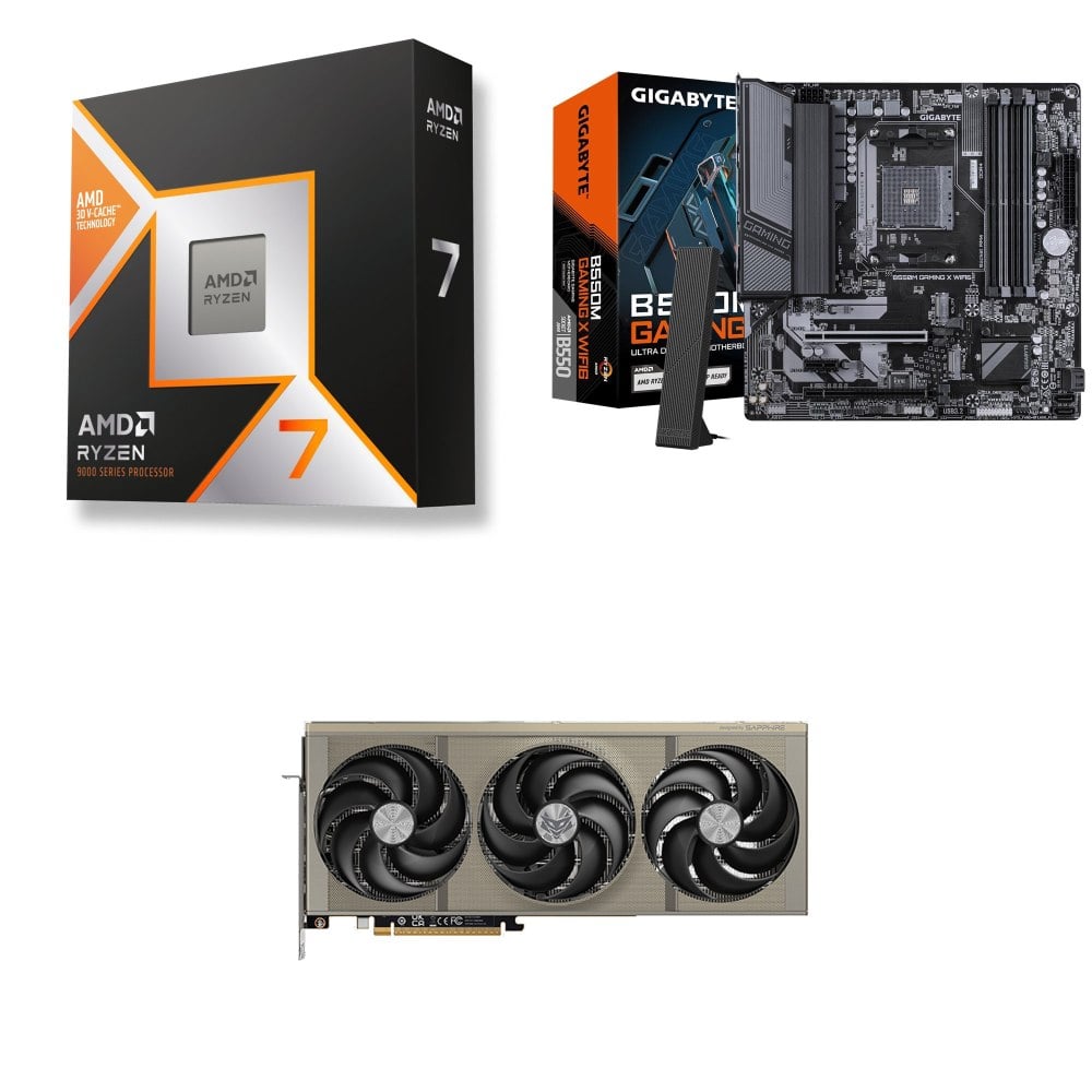 ☆裝機配★ AMD R7 9800X3D+技嘉 B550M GAMING X WIFI6 D4 MATX主機板+藍寶石 PURE 極地 RX 9070 XT GAMING OC 16GB 顯示卡
