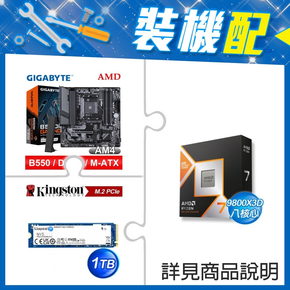 ☆裝機配★ AMD R7 9800X3D+技嘉 B550M GAMING X WIFI6 D4 MATX主機板+金士頓 NV3 1TB M.2 PCIe SSD
