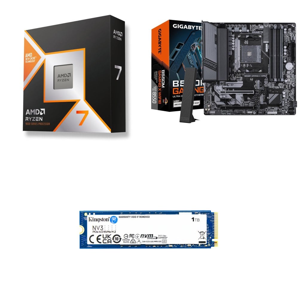 ☆裝機配★ AMD R7 9800X3D+技嘉 B550M GAMING X WIFI6 D4 MATX主機板+金士頓 NV3 1TB M.2 PCIe SSD