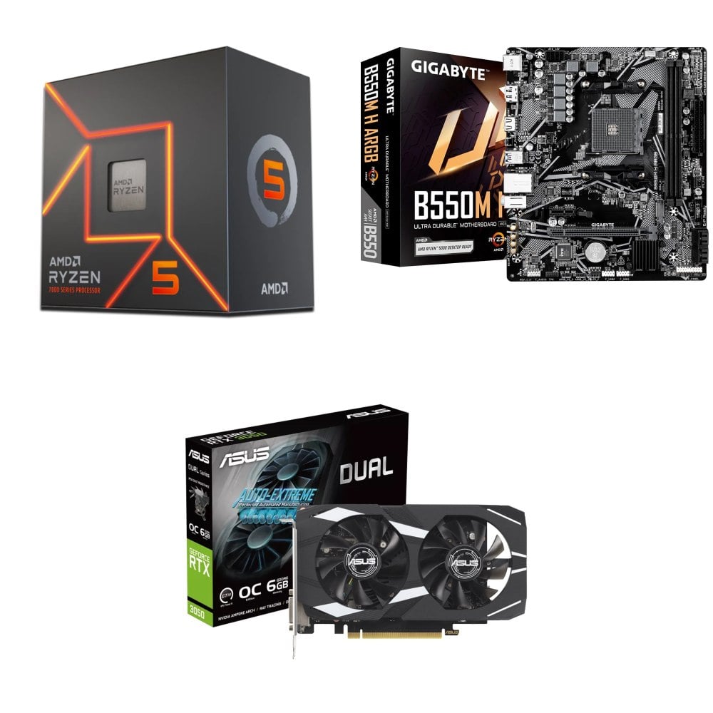 ☆裝機配★ AMD R5 7600+技嘉 B550M H ARGB D4 MATX主機板+華碩 DUAL-RTX3050-O6G 顯示卡