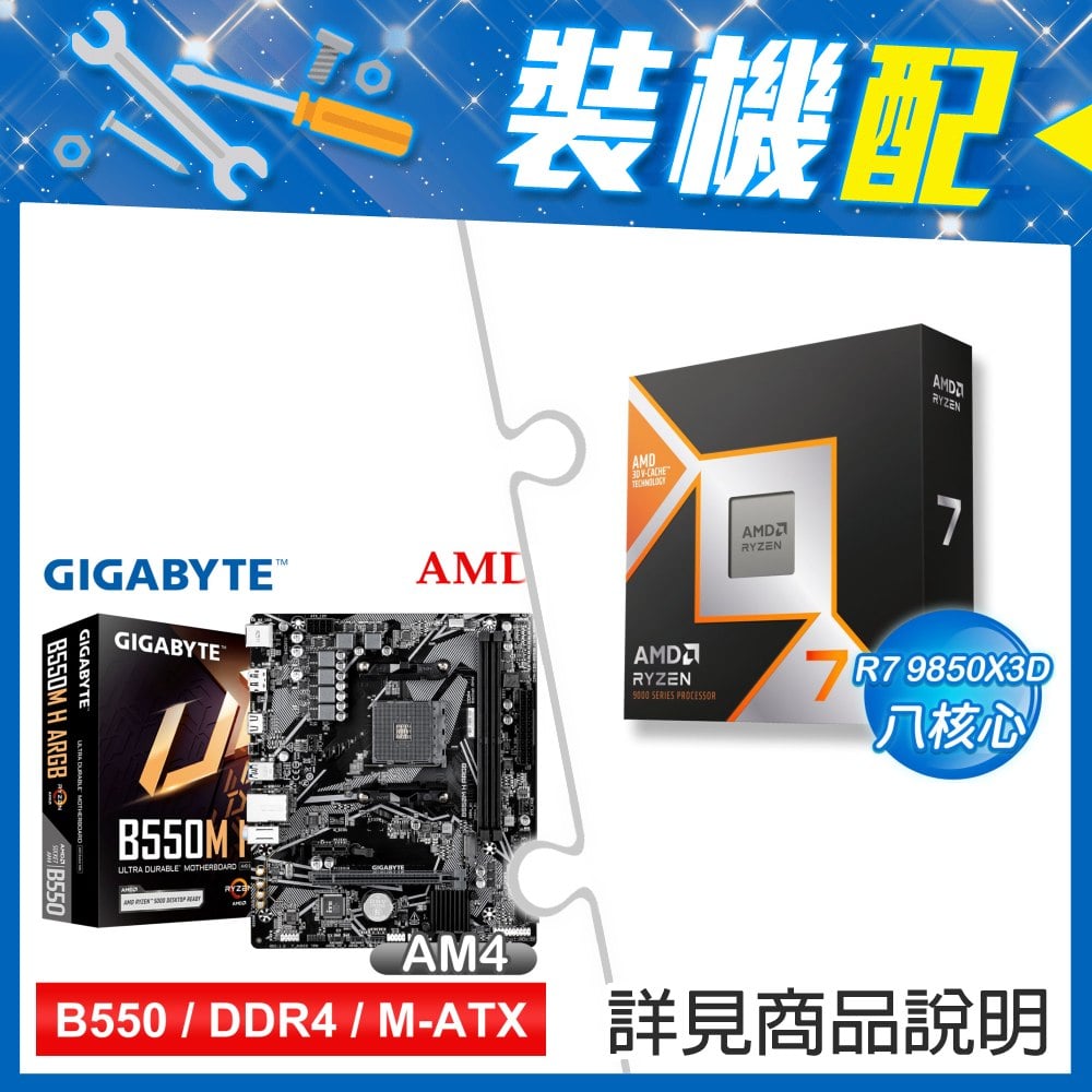 ☆裝機配★ AMD R7 9850X3D+技嘉 B550M H ARGB D4 MATX主機板