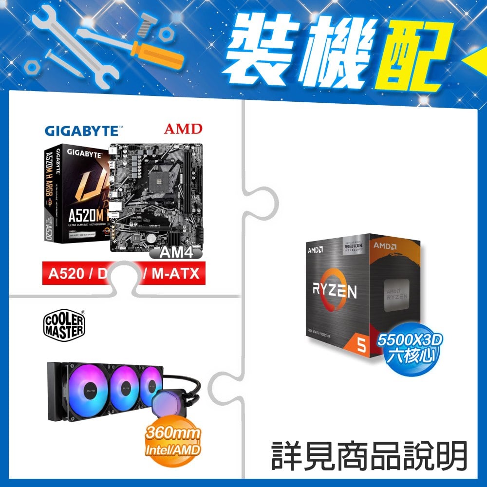 ☆裝機配★ AMD R5 5500X3D+技嘉 A520M H ARGB D4 MATX主機板+酷碼 EliteLiquid 360 ARGB 水冷散熱器