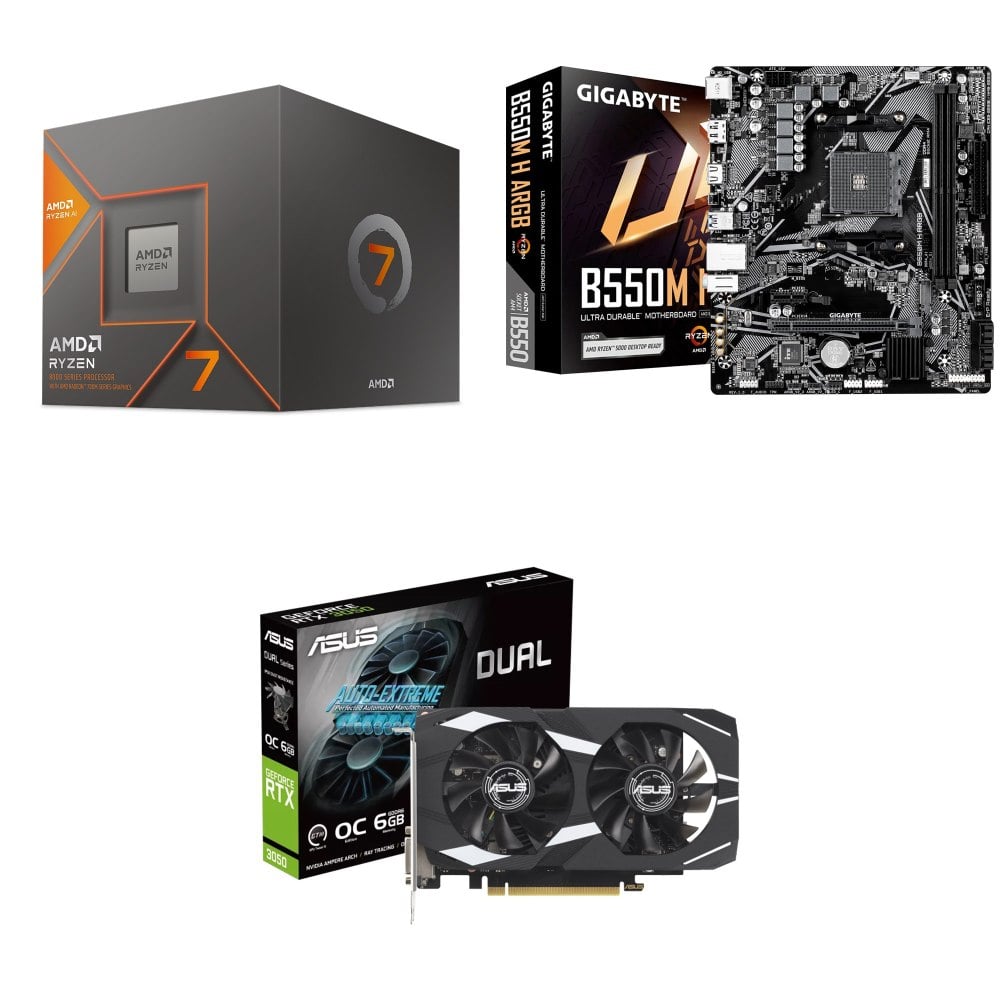 ☆裝機配★ AMD R7 8700G+技嘉 B550M H ARGB D4 MATX主機板+華碩 DUAL-RTX3050-O6G 顯示卡