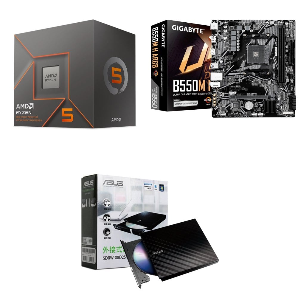 ☆裝機配★ AMD R5 8500G+技嘉 B550M H ARGB D4 MATX主機板+華碩 SDRW-08D2S-U 外接式燒錄機《黑》