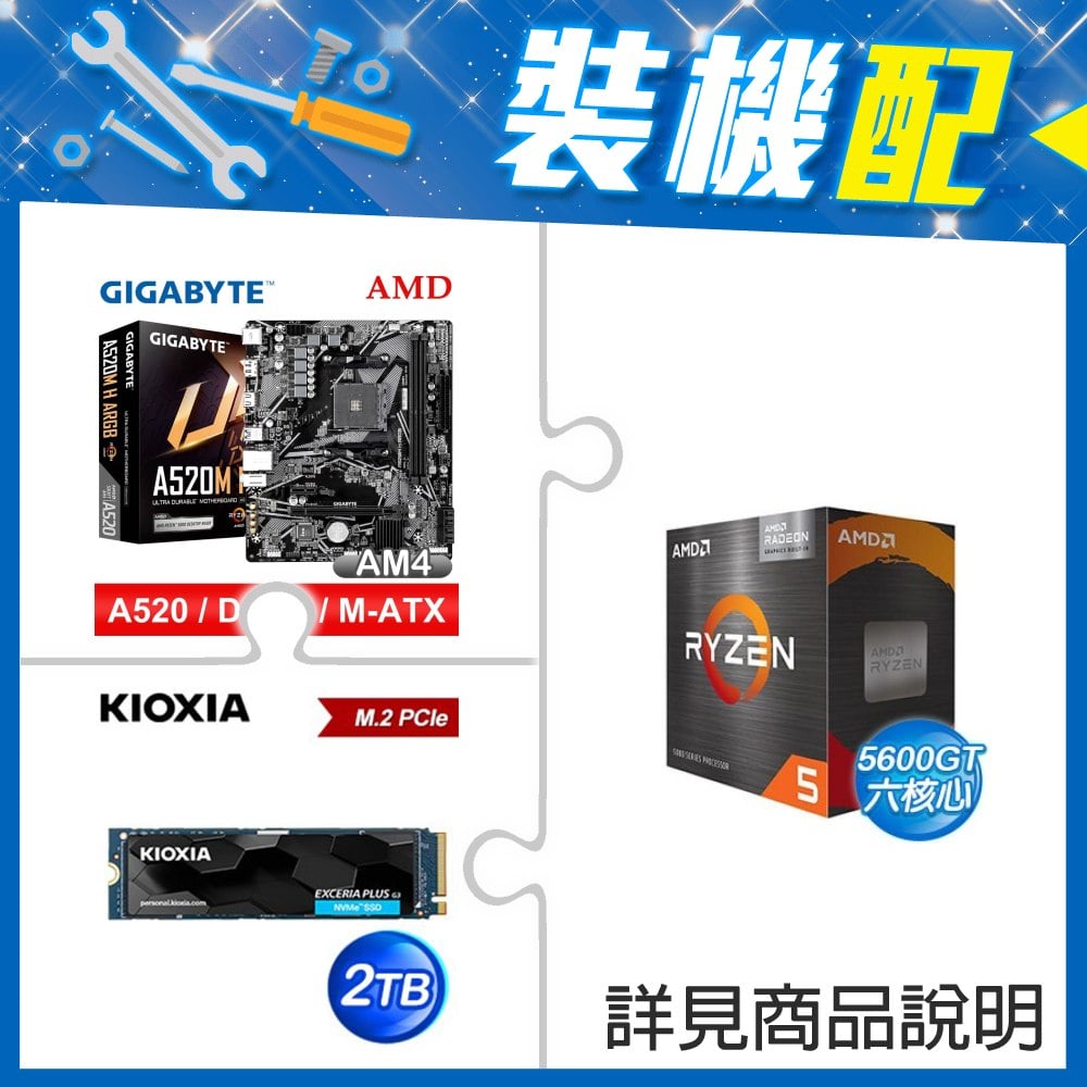 ☆裝機配★ AMD R5 5600GT+技嘉 A520M H ARGB D4 MATX主機板+鎧俠 EXCERIA PLUS G3 2TB PCIe Gen4x4 SSD