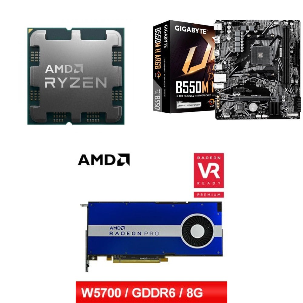 ☆裝機配★ AMD R5 7500F+技嘉 B550M H ARGB D4 MATX主機板+AMD RadeonPro W5700 8G 256bit專業繪圖卡