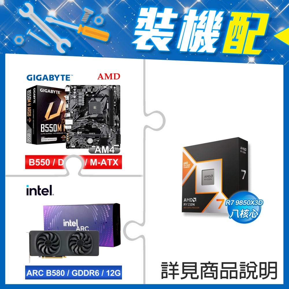 ☆裝機配★ AMD R7 9850X3D+技嘉 B550M H ARGB D4 MATX主機板+Intel Arc B580 12G 20 Core 顯示卡
