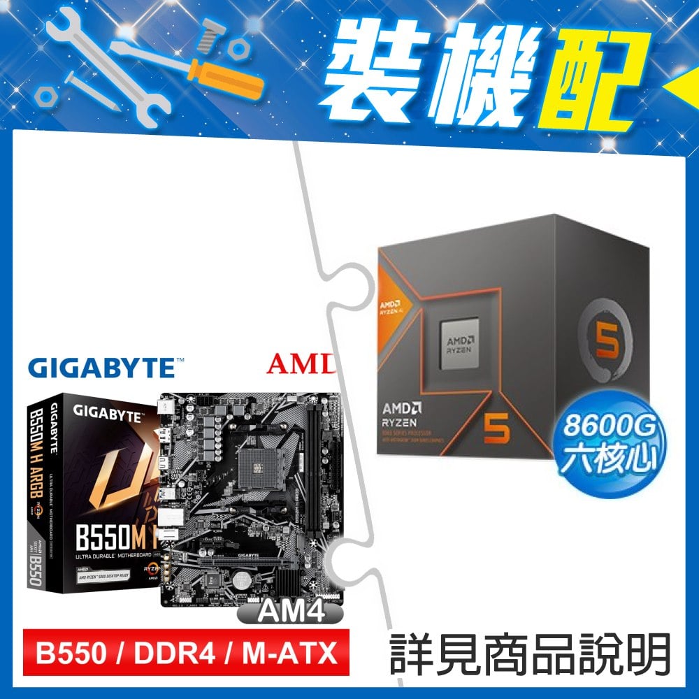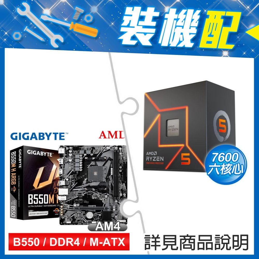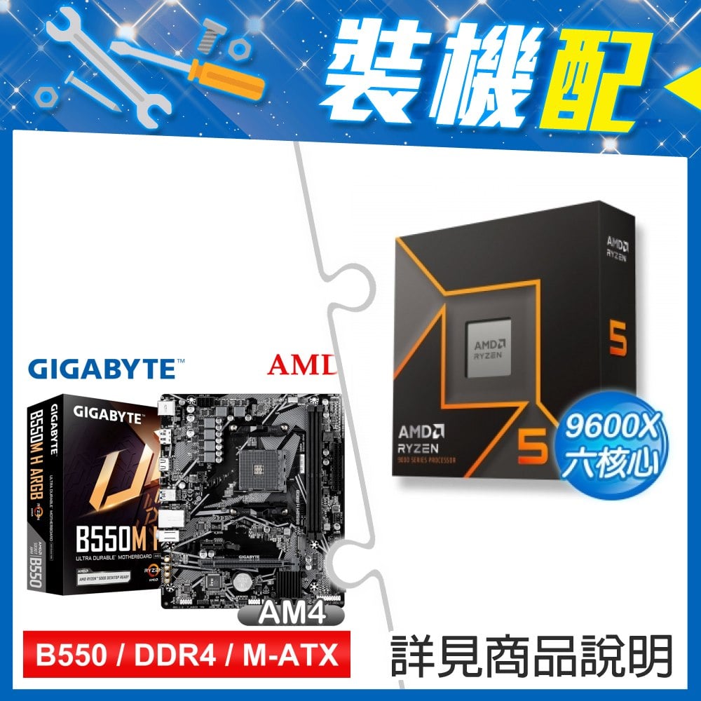 ☆裝機配★ AMD R5 9600X+技嘉 B550M H ARGB D4 MATX主機板