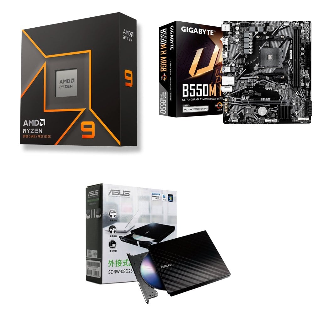 ☆裝機配★ AMD R9 9900X+技嘉 B550M H ARGB D4 MATX主機板+華碩 SDRW-08D2S-U 外接式燒錄機《黑》