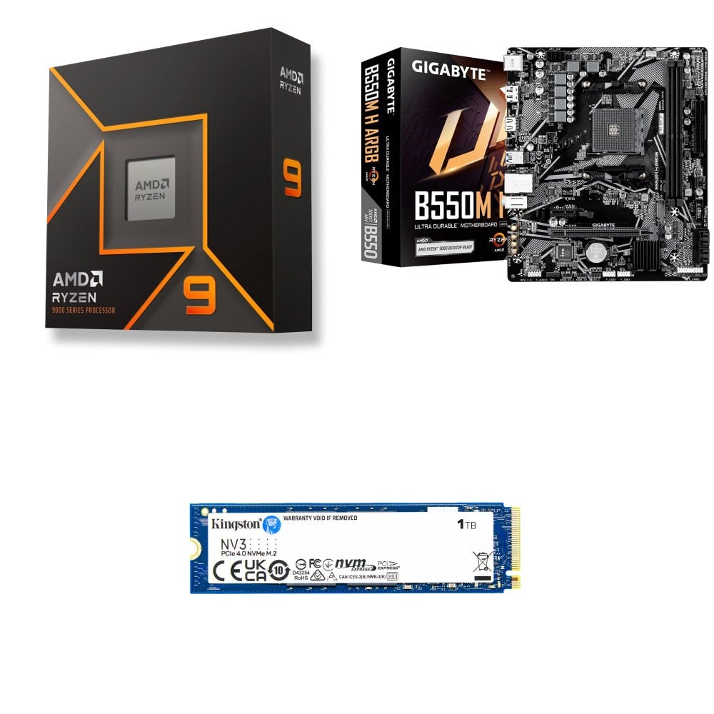 ☆裝機配★ AMD R9 9950X+技嘉 B550M H ARGB D4 MATX主機板+金士頓 NV3 1TB M.2 PCIe SSD