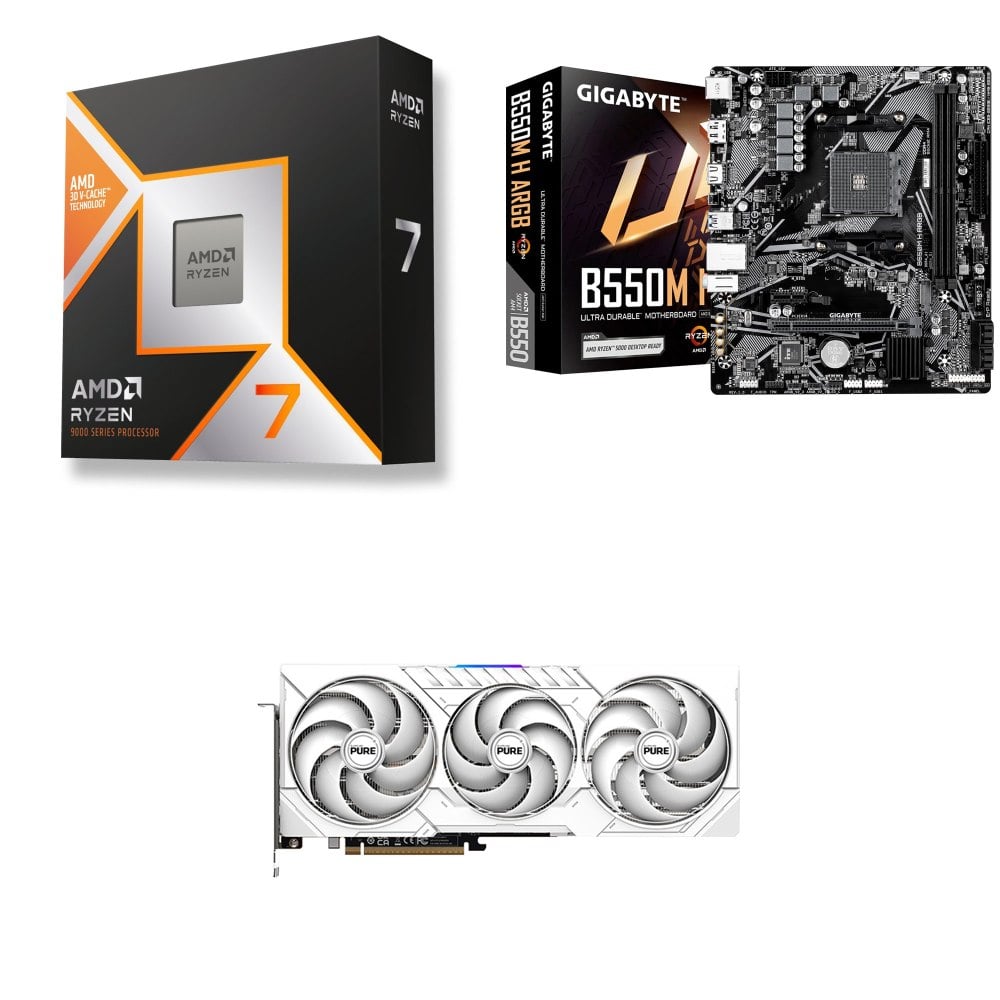 ☆裝機配★ AMD R7 9800X3D+技嘉 B550M H ARGB D4 MATX主機板+藍寶石 PURE 極地 RX 9070 XT GAMING OC 16GB 顯示卡