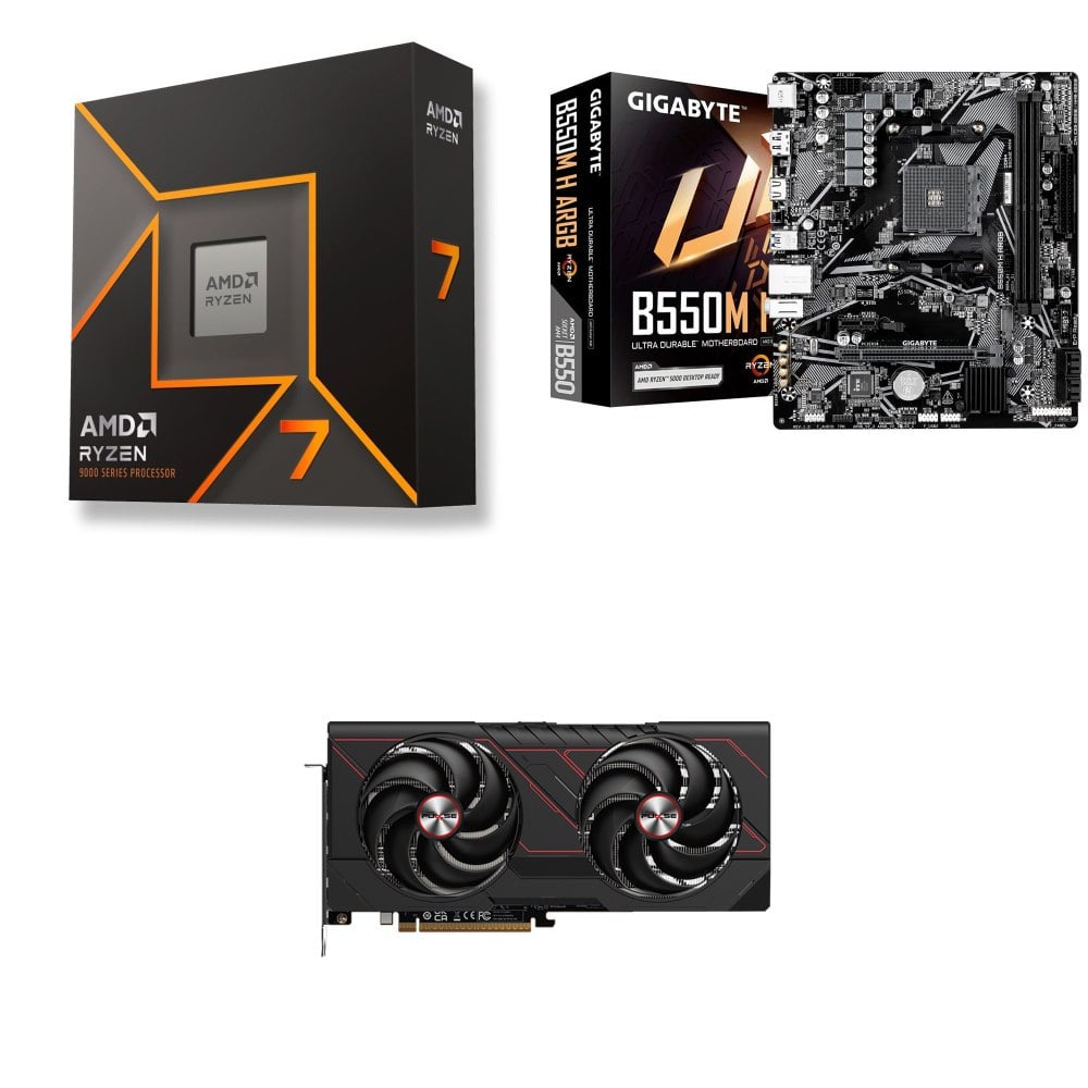 ☆裝機配★ AMD R7 9700X+技嘉 B550M H ARGB D4 MATX主機板+藍寶石 PULSE 脈動 RX 9070 GRE GAMING 12GB 顯示卡