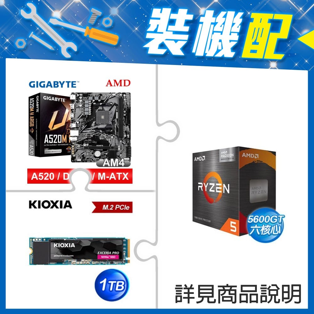 ☆裝機配★ AMD R5 5600GT+技嘉 A520M H ARGB D4 MATX主機板+鎧俠 EXCERIA PLUS G3 1TB PCIe Gen4x4 SSD