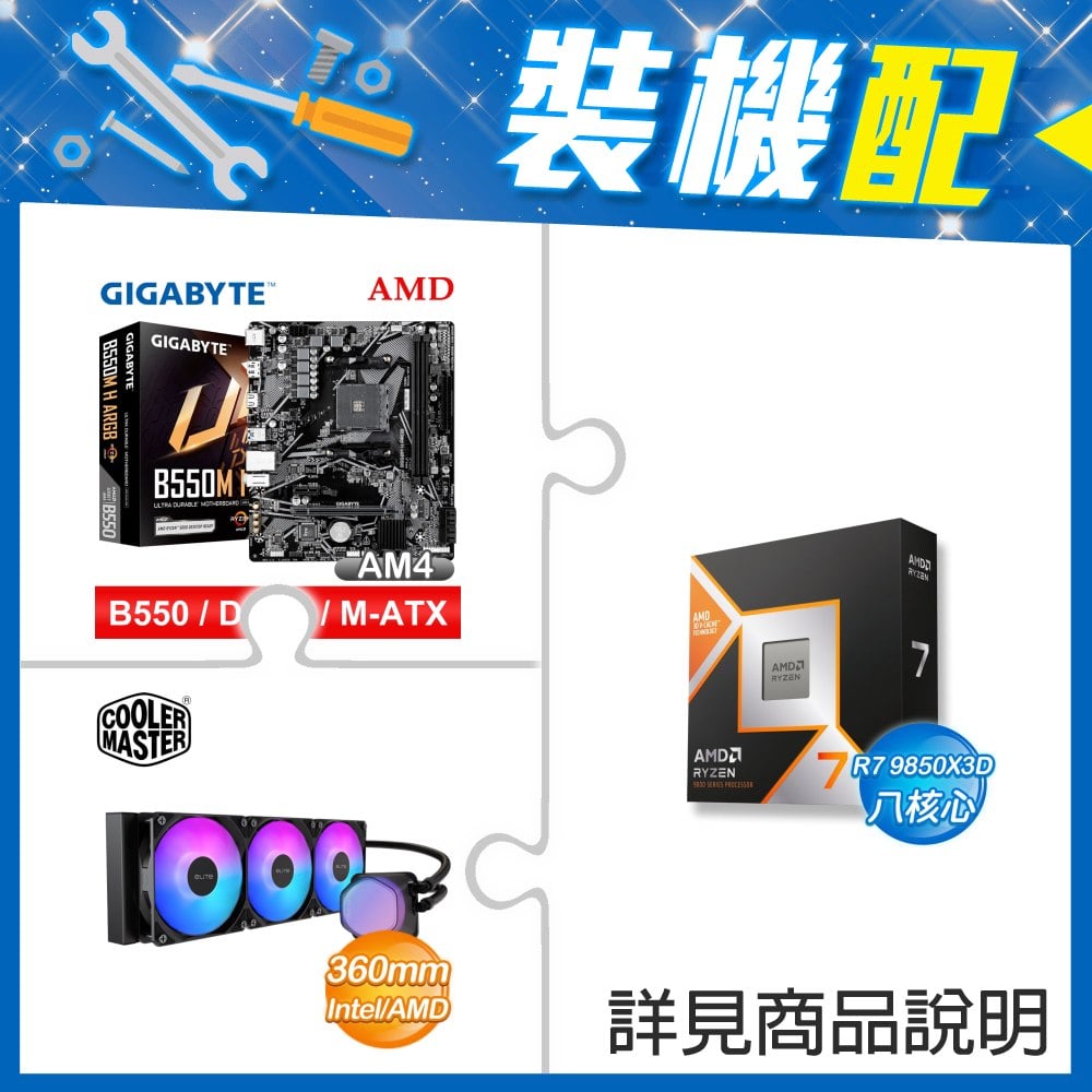 ☆裝機配★ AMD R7 9850X3D+技嘉 B550M H ARGB D4 MATX主機板+酷碼 EliteLiquid 360 ARGB 水冷散熱器