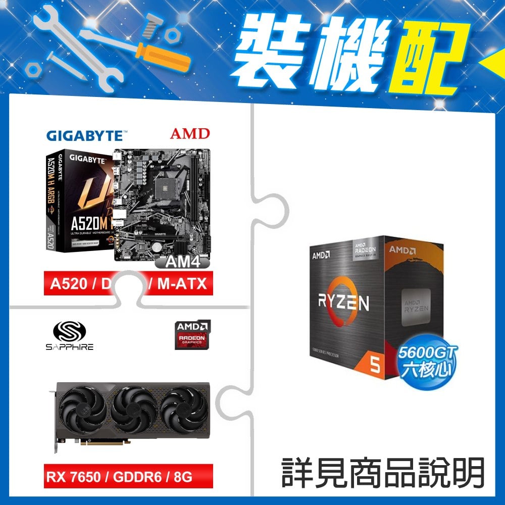 ☆裝機配★ AMD R5 5600GT+技嘉 A520M H ARGB D4 MATX主機板+藍寶石 黑鑽版 RX 7650 GRE GAMING OC 8GB 顯示卡