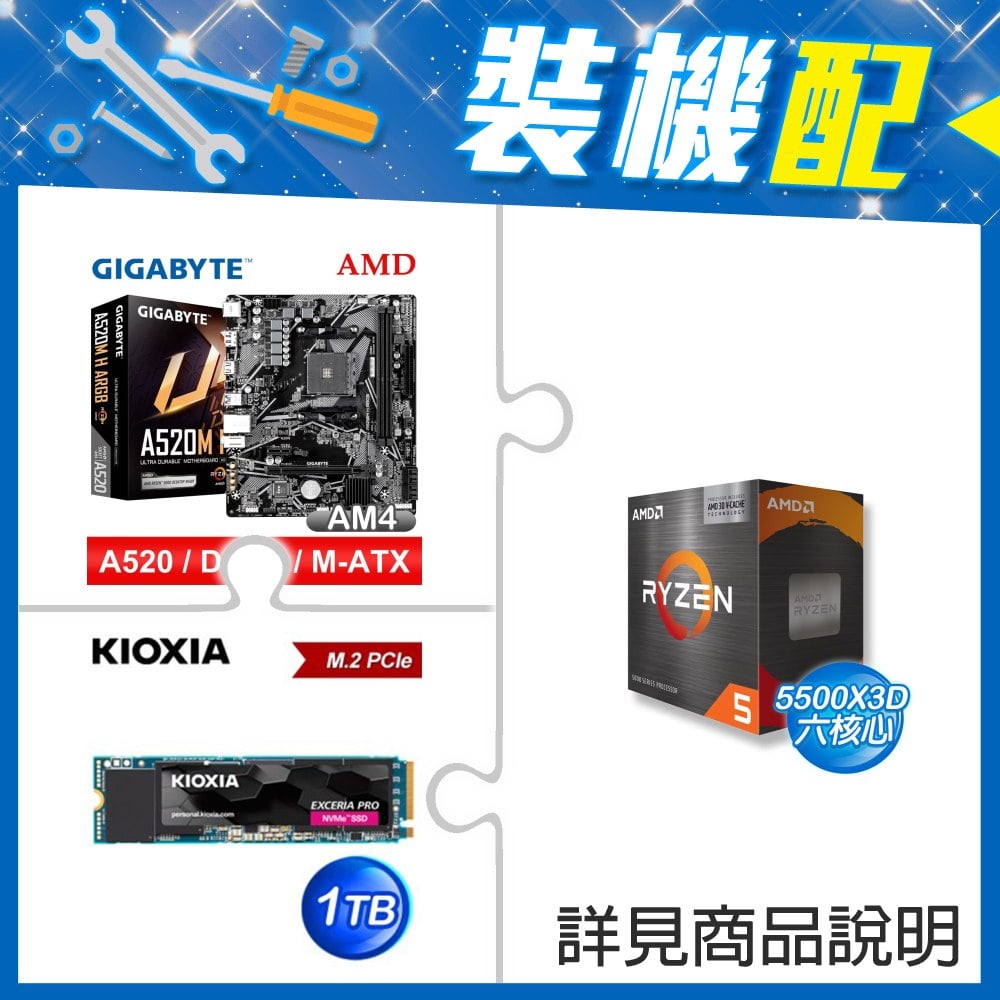 ☆裝機配★ AMD R5 5500X3D+技嘉 A520M H ARGB D4 MATX主機板+鎧俠 EXCERIA PRO 1TB PCIe Gen4x4 SSD