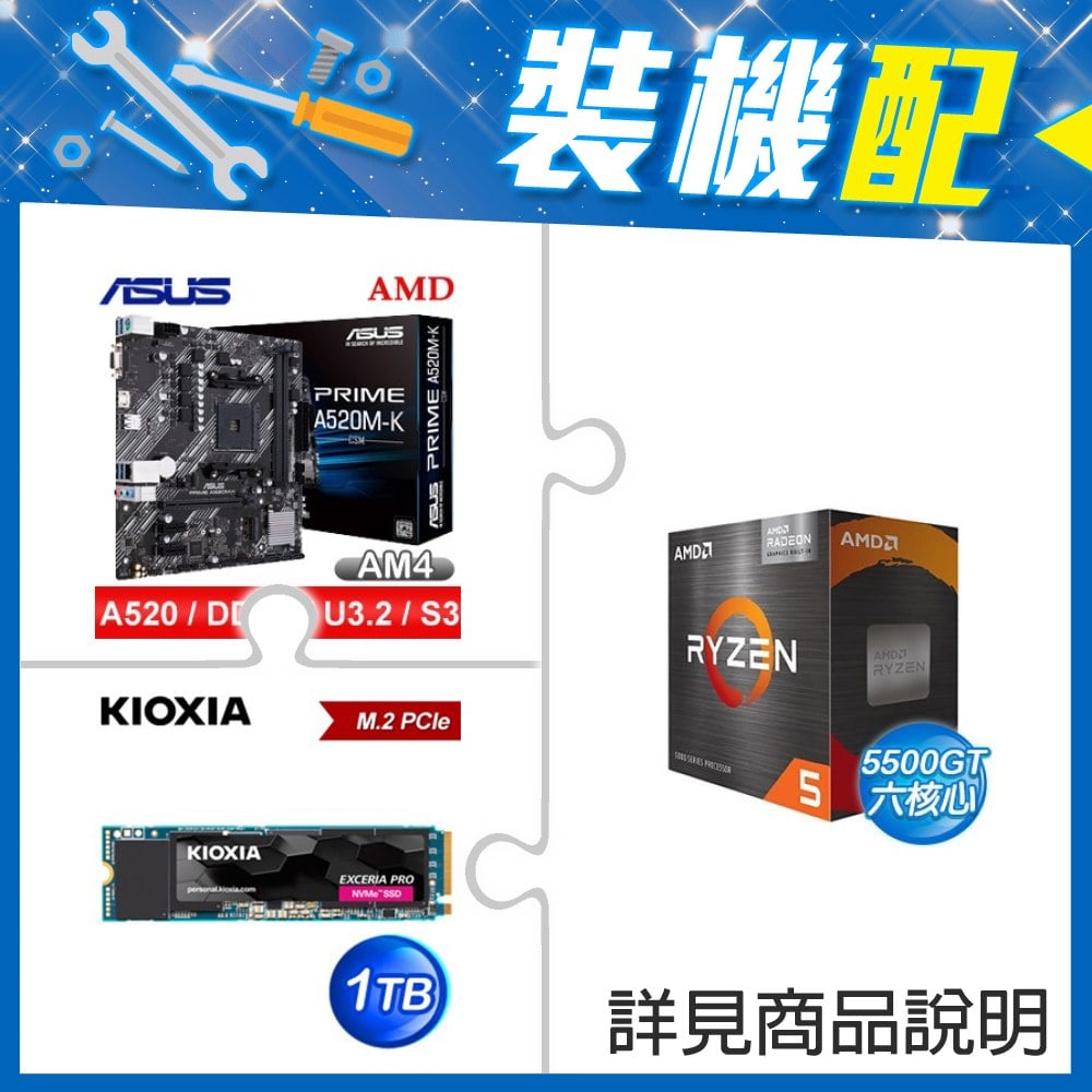 ☆裝機配★ AMD R5 5500GT+華碩 PRIME A520M-K CSM M-ATX 主機板+鎧俠 EXCERIA PRO 1TB PCIe Gen4x4 SSD