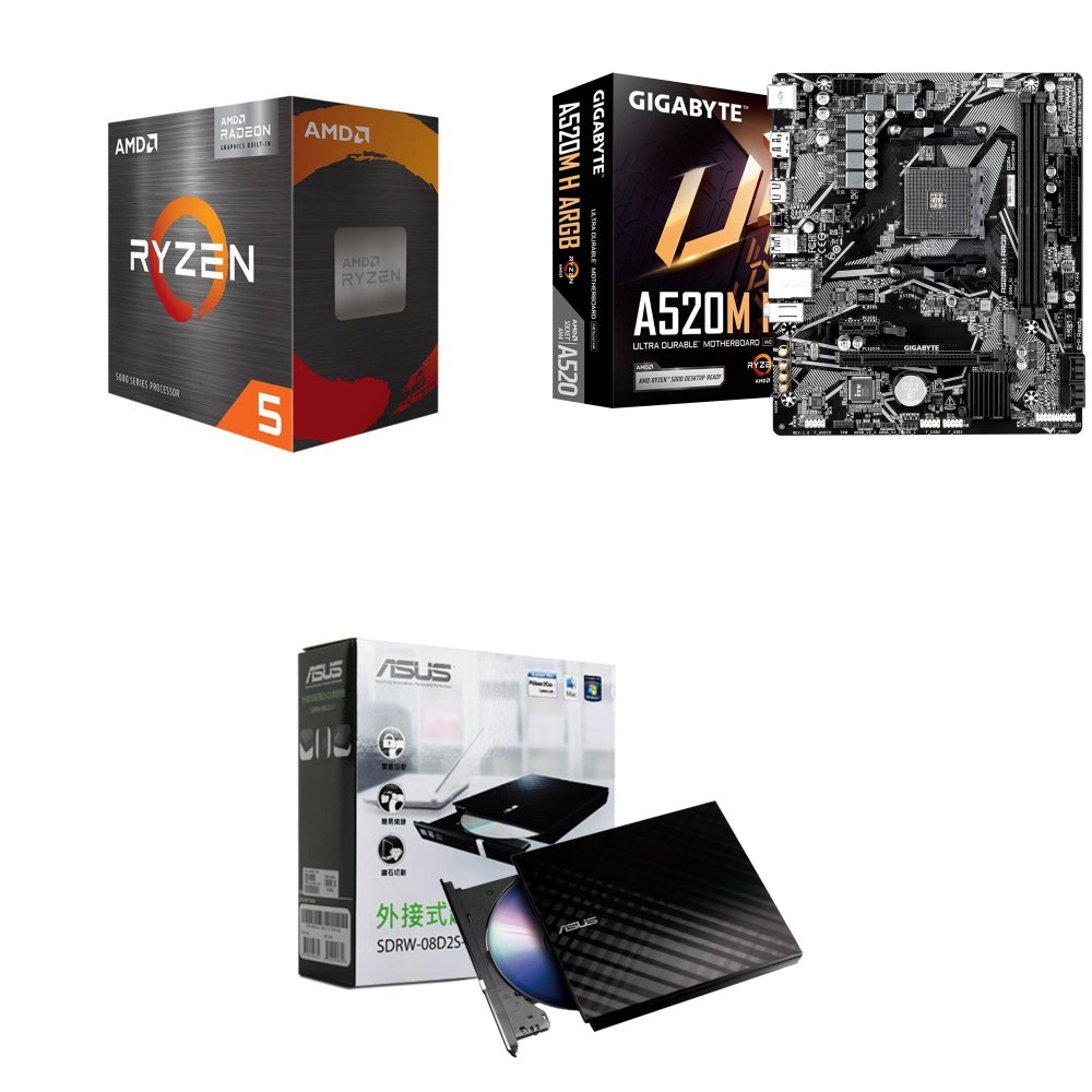☆裝機配★ AMD R5 5500GT+技嘉 A520M H ARGB D4 MATX主機板+華碩 SDRW-08D2S-U 外接式燒錄機《黑》