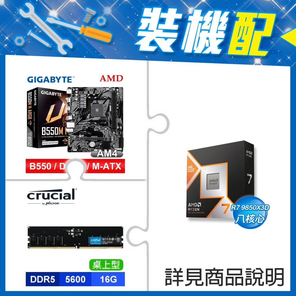 ☆裝機配★ AMD R7 9850X3D+技嘉 B550M H ARGB D4 MATX主機板+美光 DDR5-5600 16G 記憶體