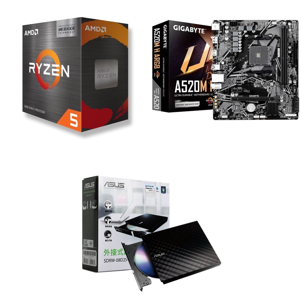 ☆裝機配★ AMD R5 5500X3D+技嘉 A520M H ARGB D4 MATX主機板+華碩 SDRW-08D2S-U 外接式燒錄機《黑》