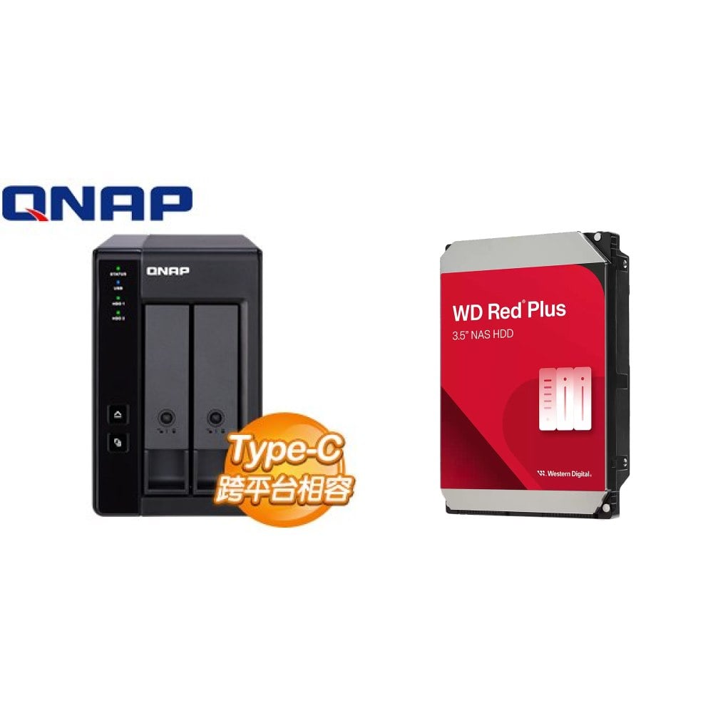 ☆期間限定★ QNAP TR-002 NAS 磁碟陣列外接盒+WD 紅標Plus 4TB 5400轉 128MB NAS硬碟(X2)