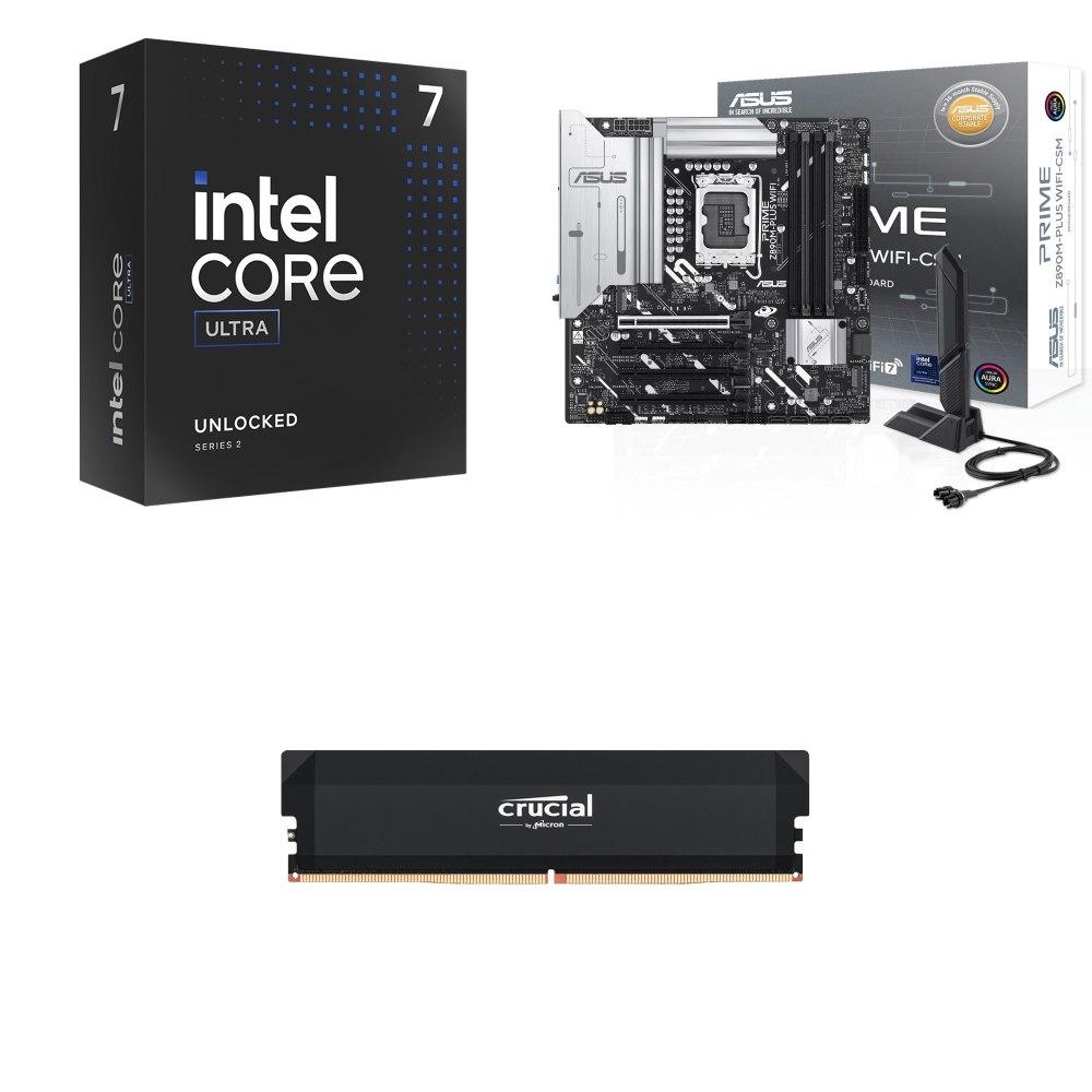 ☆裝機配★ Core U7 265K+華碩 PRIME Z890M-PLUS WIFI-CSM D5 M-ATX主機板+美光 Crucial PRO DDR5-6000 16G 記憶體