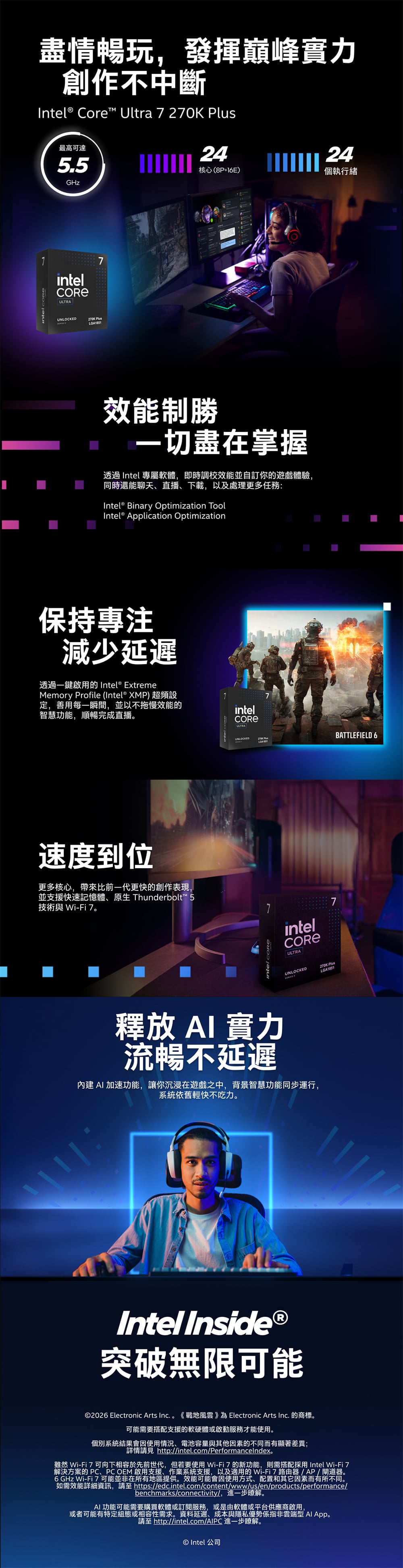 - [1] Intel Core Ultra 7 270K Plus 24核24緒 另加NPU 的 AI 處理器