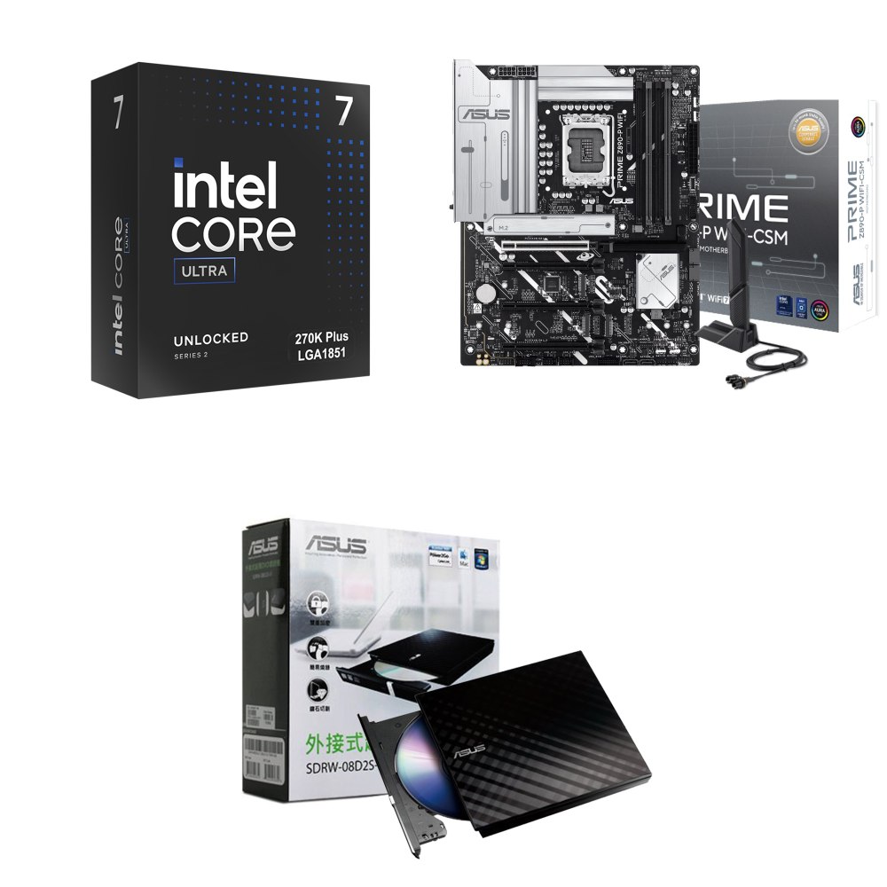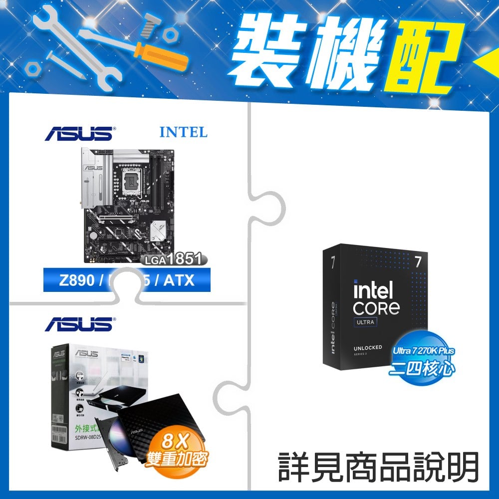 ☆裝機配★ Ultra7 270K Plus+華碩 PRIME Z890-P WIFI-CSM D5 ATX主機板+華碩 SDRW-08D2S-U 外接式燒錄機《黑》