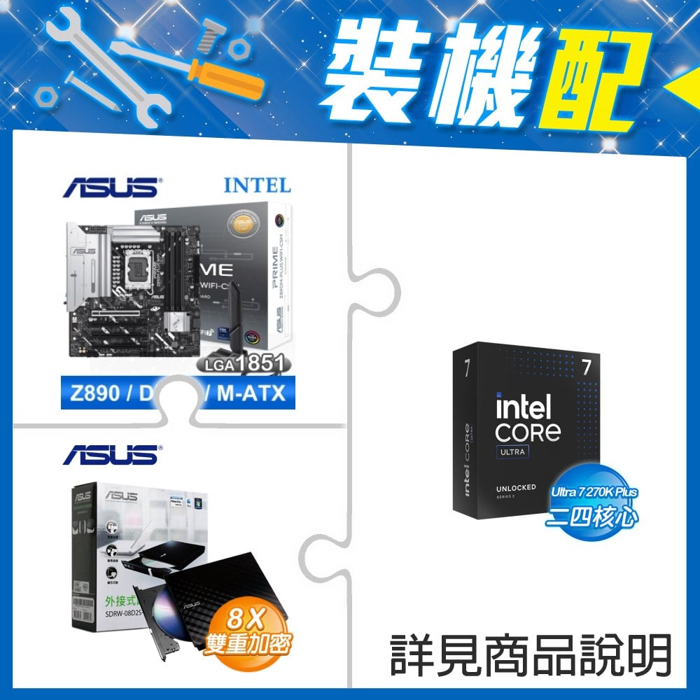 ☆裝機配★ Ultra7 270K Plus+華碩 PRIME Z890M-PLUS WIFI-CSM D5 M-ATX主機板+華碩 SDRW-08D2S-U 外接式燒錄機《黑》