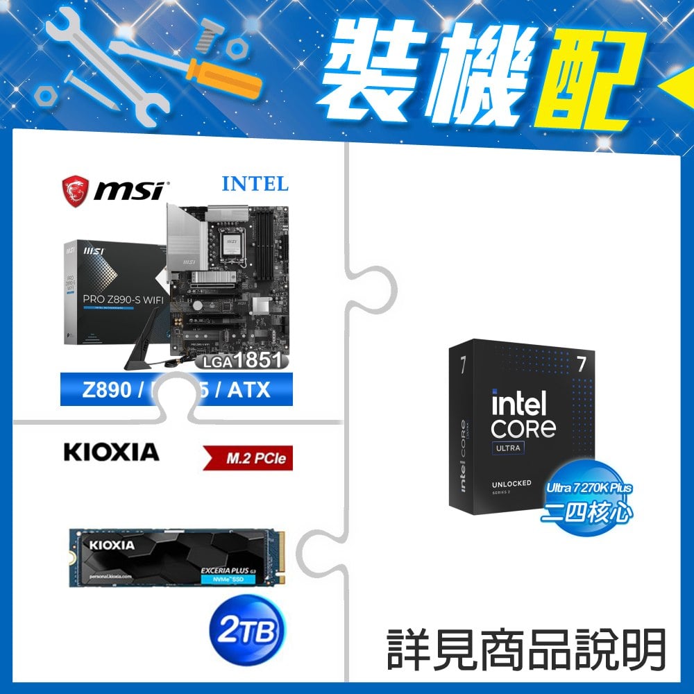☆裝機配★ Ultra7 270K Plus+微星 PRO Z890-S WIFI D5 ATX主機板+鎧俠 EXCERIA PLUS G3 2TB PCIe Gen4x4 SSD