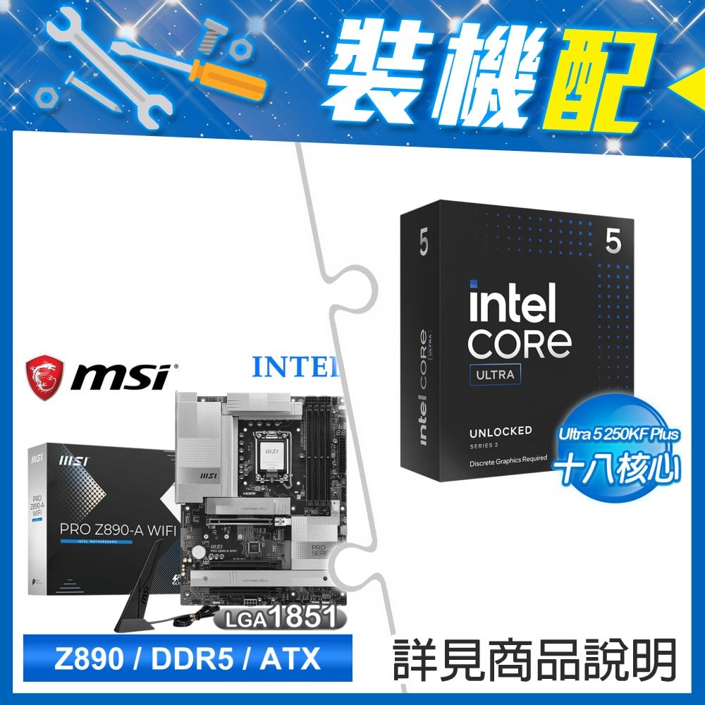 ☆裝機配★ Ultra5 250KF Plus+微星 PRO Z890-A WIFI D5 ATX主機板