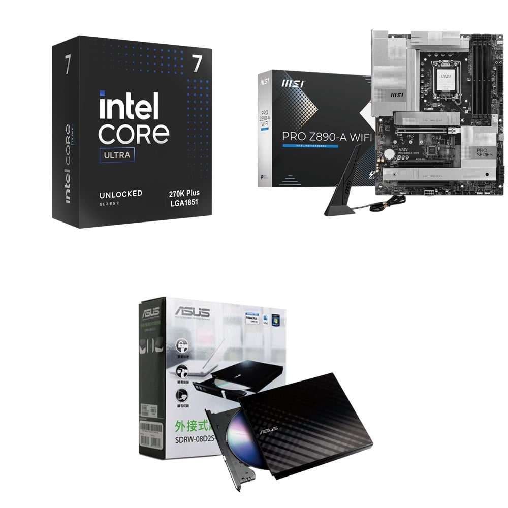 ☆裝機配★ Ultra7 270K Plus+微星 PRO Z890-A WIFI D5 ATX主機板+華碩 SDRW-08D2S-U 外接式燒錄機《黑》