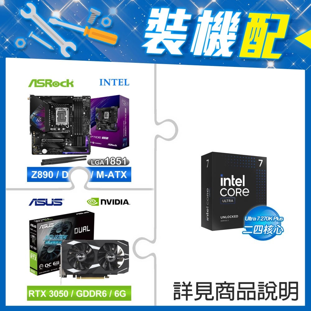 ☆裝機配★ Ultra7 270K Plus+華擎 Z890 Riptide WiFi D5 ATX主機板+華碩 DUAL-RTX3050-O6G 顯示卡